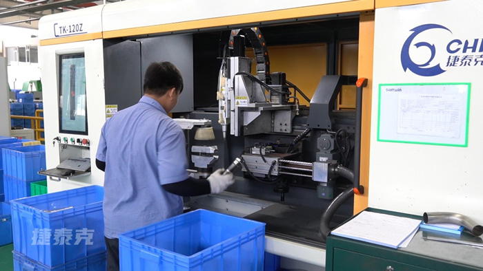 薑工:彎頭切割(gē)機的主要(yào)影響(xiǎng)是在彎管修端這裏,傳統(tǒng)我們用的是彎頭倒角機,彎頭倒角機它刀片切削完後會產生毛刺,我們一般會(huì)人工去拋毛刺或者去機器振動拋(pāo)光,這樣會(huì)多增加了一道工序。激光切割的話,切下來的它切口是比(bǐ)較平整的,省去了後續的去毛刺的工序,這樣的(de)話物(wù)料的加工時間就會(huì)縮短,提高了生產效率。